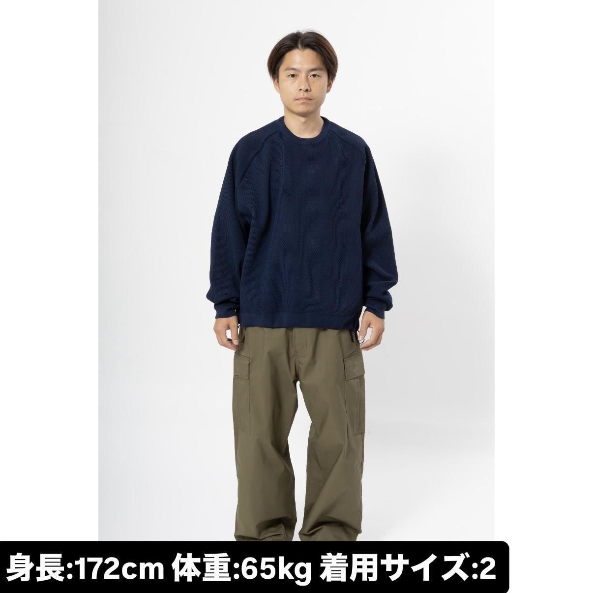 様々な編み地を組み合わせ、編み立て特有の素材感とデザインのアクセントを加えました。